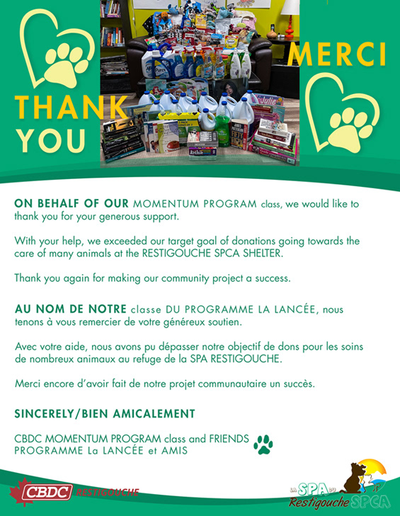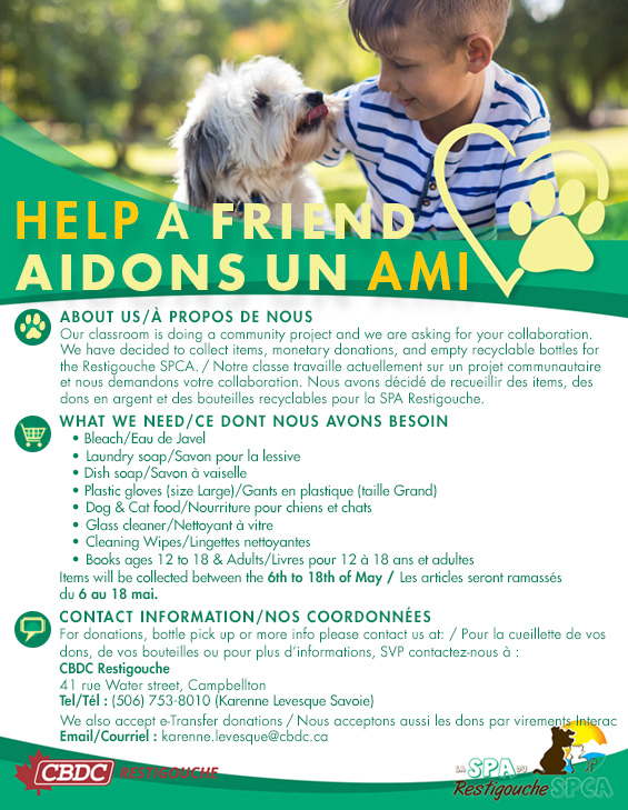 PROJECT: Designing a flyer to raise funds and supplies for the local SPCA in Restigouche, New Brunswick.